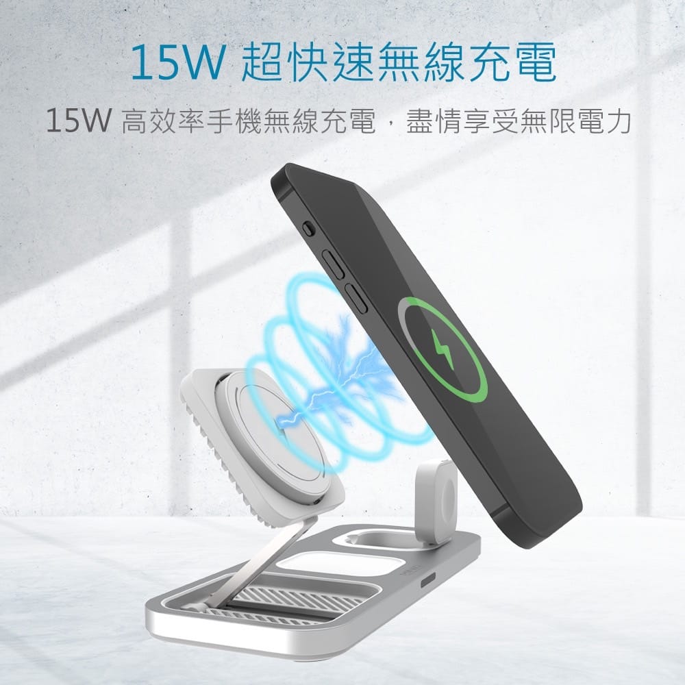 MiniQ WC-001 22.5W 3合1鋁合金磁吸無線充電器 商品代碼:8833-14 顏 色:灰、銀 商品特色: (套裝組,內附20W充電頭+TypeC-C 充電線) 手機/Apple 手錶/Apple 藍芽耳機 適用 網路售價:1890元(請遵守約定、不可亂價) #miniQ