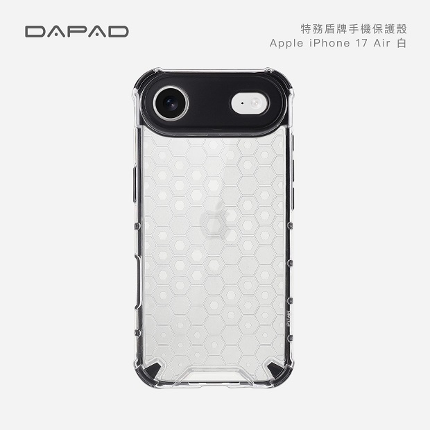 ~Dapad 盾牌特務保護殼~ 商品代碼:3364 顏 色:黑、白 型 號: IP17 (6.3) IP17 Air (6.6) IP17PRO (6.3) IP17PRO Max (6.9) 商品特色: PC+TPU 雙重材質,雙重防護 四角防撞設計,抗震防摔更升級 六角設計,散熱更迅速 加強墊高防護,避免鏡頭跟螢幕受損 真機開模製作,孔位精準正常操作自 #Dapad #盾牌特務防摔殼