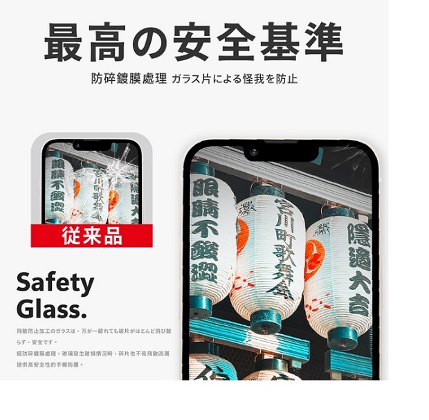 ◆ 經防碎鍍膜處理,玻璃發生破損情況時,碎片也不易飛散四濺,提供高安全性的手機防護。