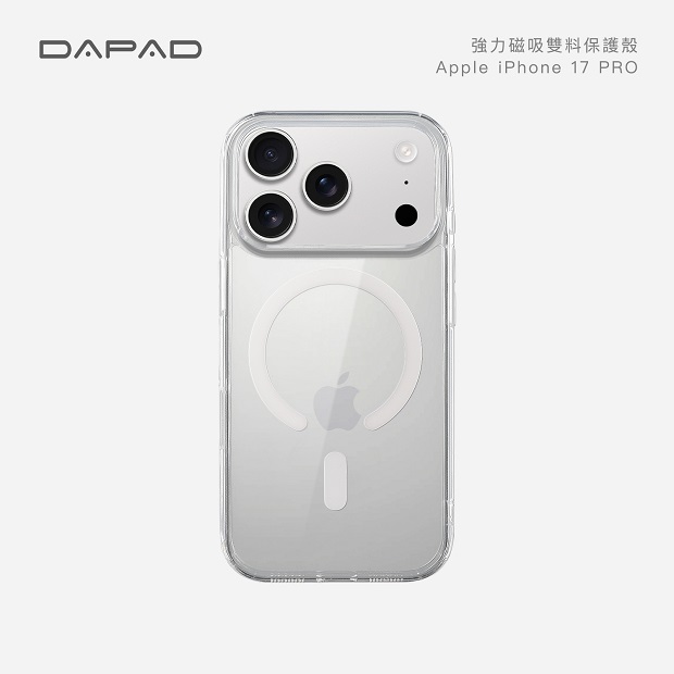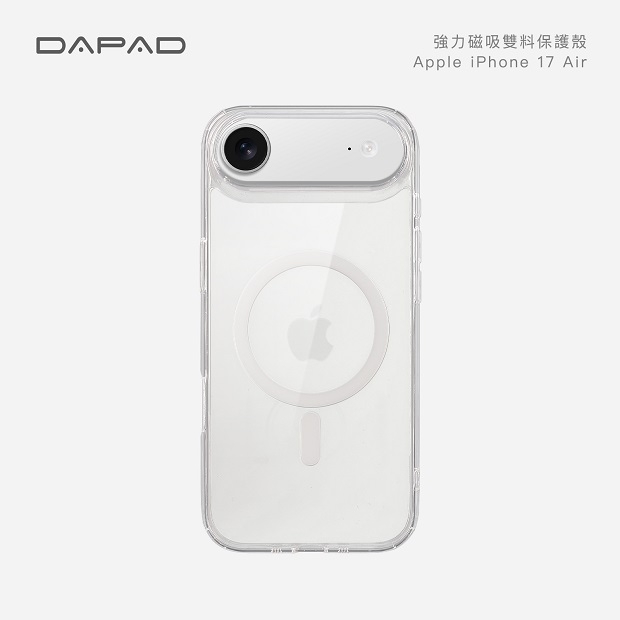 Dapad 強力磁吸雙料殼 商品代碼:3354 型 號: IP17 (6.3) IP17 Air (6.6) IP17 PRO (6.3) IP17 PRO Max (6.9) 商品特色: ◆ 兼容磁吸功能,磁力加倍,使用無線充電也超順暢。 ◆ 四角防摔氣囊,有效降低手機摔落衝擊力。 ◆ 鏡頭框、邊框加高防護,完美抵禦平放時摩擦傷害。 ◆ 軟硬雙重保護,抗發黃透明背板+吸震軟膠邊框。 ◆ 一體成型按鍵,靈敏回饋,特務磨砂處理,不手滑。 ※ 磁吸效果會因不同裝置與產品產生差異。