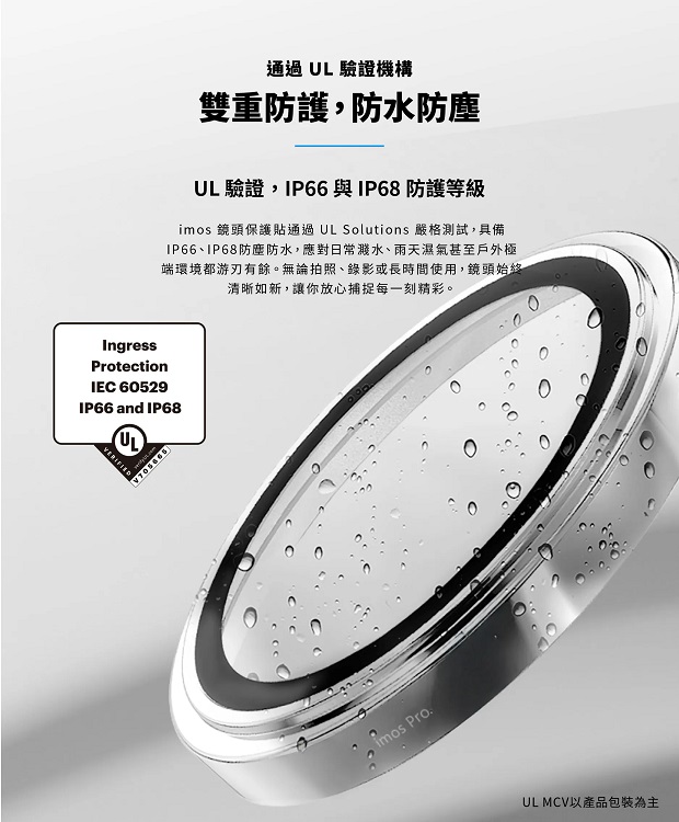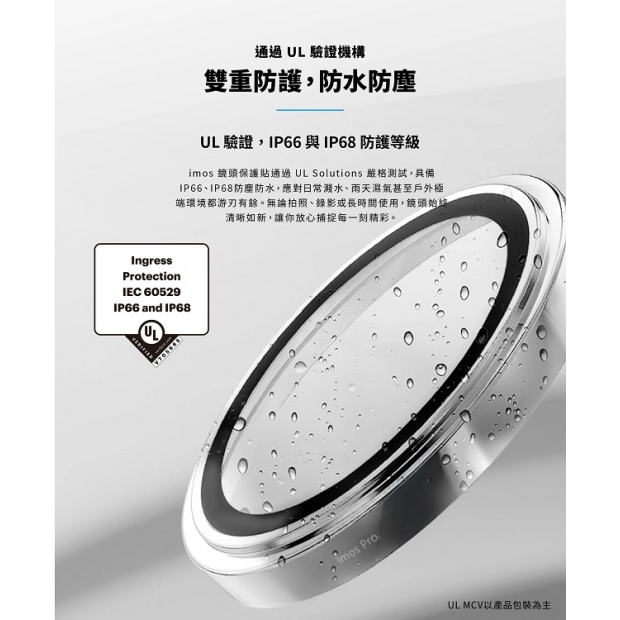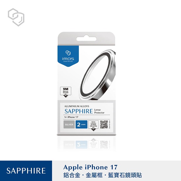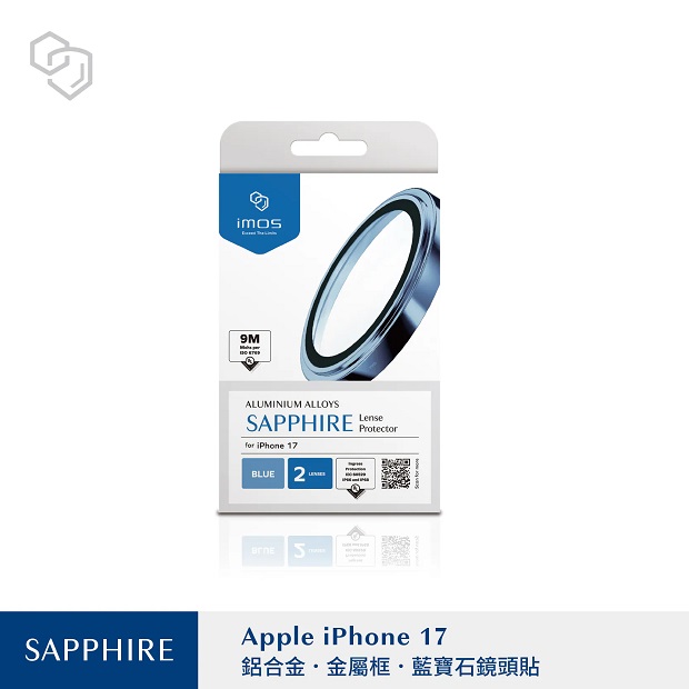 iPhone17 藍寶石鏡頭保護鏡 (兩顆)-6色 商品代碼:3109-52 顏 色:燒鈦 商品代碼:3109-51 顏 色:黑色、紫色、銀色、綠色、藍色 商品特色: ◆ SAPPHIRE 新升級藍寶石鏡頭保護貼 ◆ imos 17 iPhone 系列全面附上UL MCV行銷驗證卡,實力看得見,信賴更升級 ◆ 原機色彩隨機搭配 - 精湛工藝打造原機質感,一體式設計完美無瑕 ◆ 通過UL 驗證機構 9M藍寶石級防護 - 堅硬如鑽,晶透如光 ◆ 通過UL 驗證機構 雙重防護,防水防塵 - IP66 與 IP68 防護等級