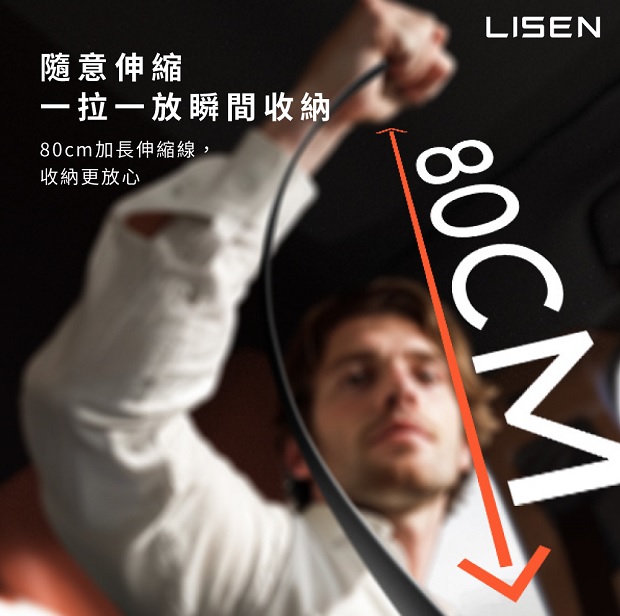 ◆ 隨意伸縮,一拉一放瞬間收納,80cm加長伸縮線,收納更放心。
