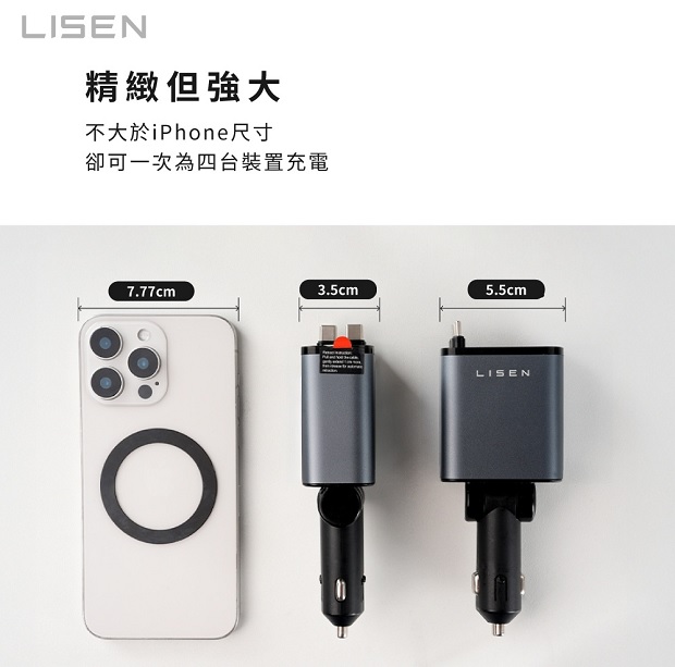 ◆ 精緻但強大,不大於iPhone尺寸,卻可一次為四台裝置充電。