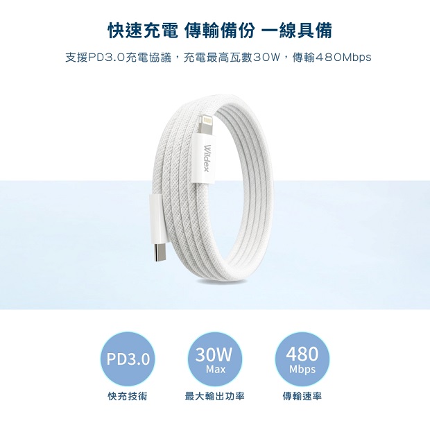 wildex MFI磁吸傳輸充電線 1m / 2m 商品代碼: 商品顏色:黑色 / 白色 商品特色: ◆ 磁吸設計收納延展不設限 ◆ 充電快速捲收整齊不雜亂 ◆ 支援 PD3.0快充規格數據傳輸可達480Mbps ◆ 搭載 E-marker 晶片智能調節更安全