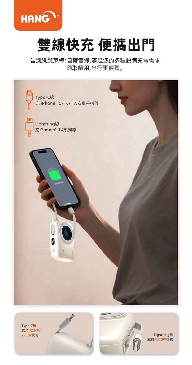 Type-C線採用創新二合一設計,既是充電線也是時尚的掛繩,不帶包也能拎著就出門。