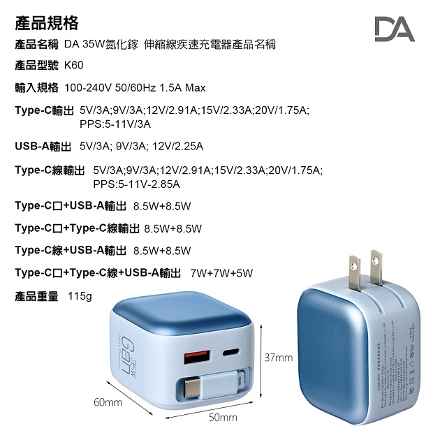 ◆ 插腳可收折,方塊機身僅115g,輕鬆塞入口袋或小包,國內外旅遊商務必備。