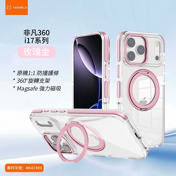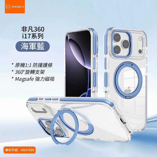 ~非凡360 彩邊磁吸充電立架保護殼~ 商品代碼:3004-17 顏色:星矅黒/玫瑰金/海軍藍/薰衣紫/冰川銀 P17 (6.3) IP Air (6.5) IP17 Pro (6.3) IP17 Pro Max (6.9) 商品特色: 360度專利旋轉磁吸立架/車架 軍規防摔殼,支援無線磁吸充電。 專利商品,仿冒必究 專利字號:M647499