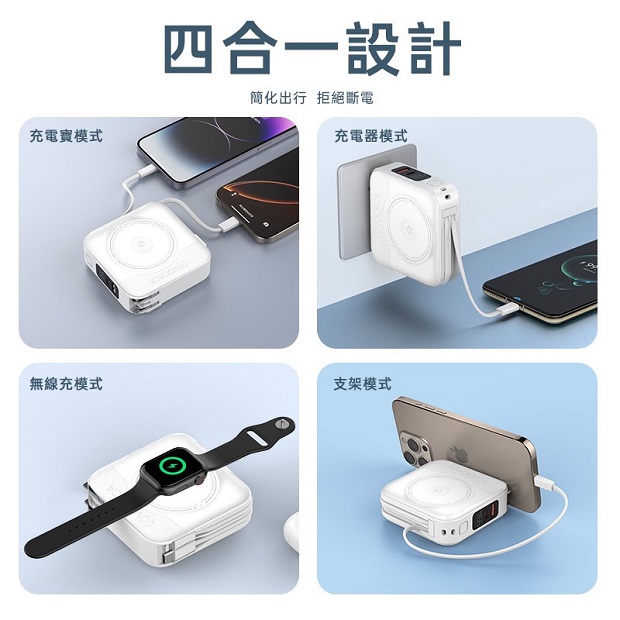 ◆ 自帶雙線設計,內建 Type-C + Lightning隱藏式充電線,兼具快充性能與攜帶便利性,出門不用帶線,也能充電。