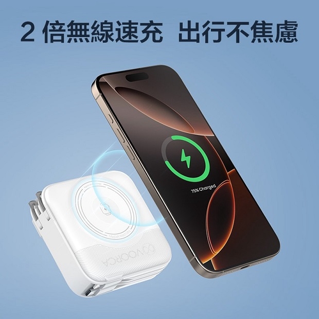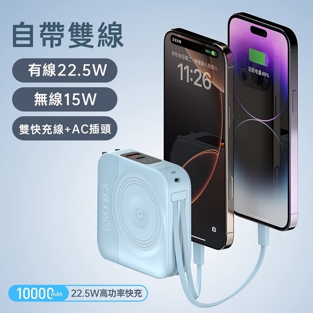 ◆ 自帶雙線設計,內建 Type-C + Lightning隱藏式充電線,兼具快充性能與攜帶便利性,出門不用帶線,也能充電。