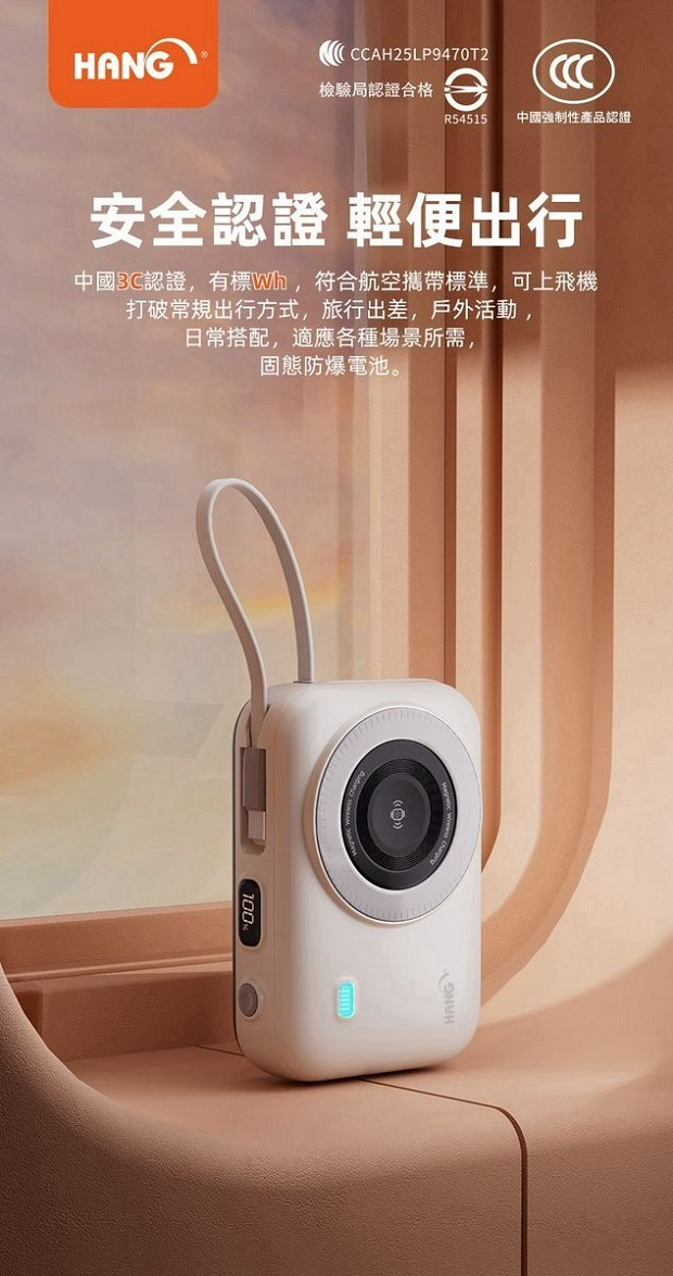 中國3C認證,有標示wh,符合航空攜帶標準,可上飛機打破常規出行方式,旅行出差、戶外活動、日常搭配,適應各種場景所需,固態防爆電池。