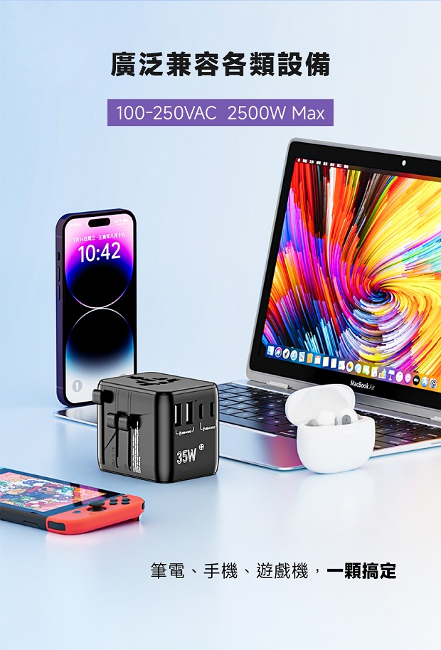 ▪多合一設計,向上推便可轉換3種國際規格。