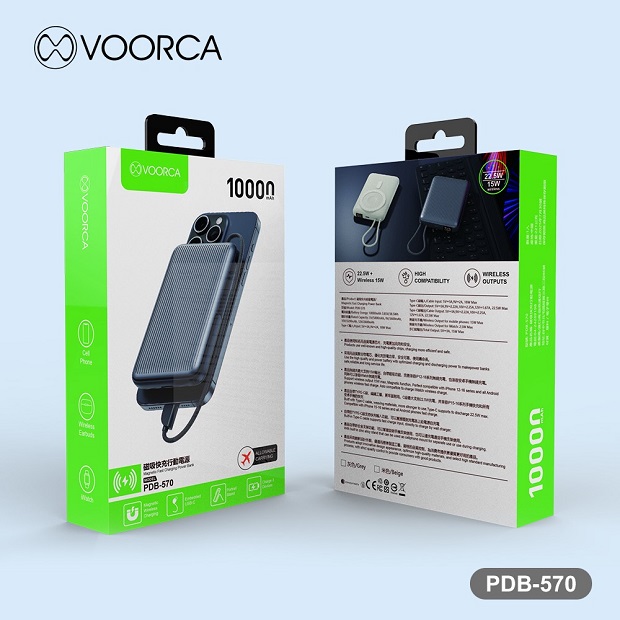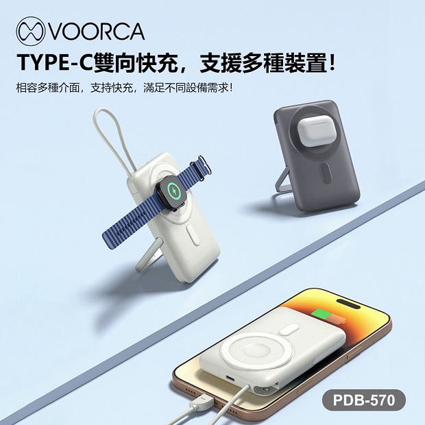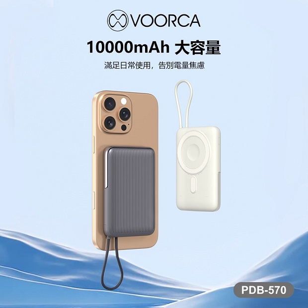 VOORCA 超薄型行李箱 10000mAh 自帶線行動電源 + 3合1磁吸式無線充