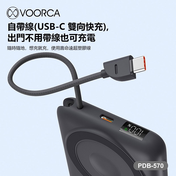 ◆ 自帶線 (USB-C 雙向快充),出門不用帶線也可充電。