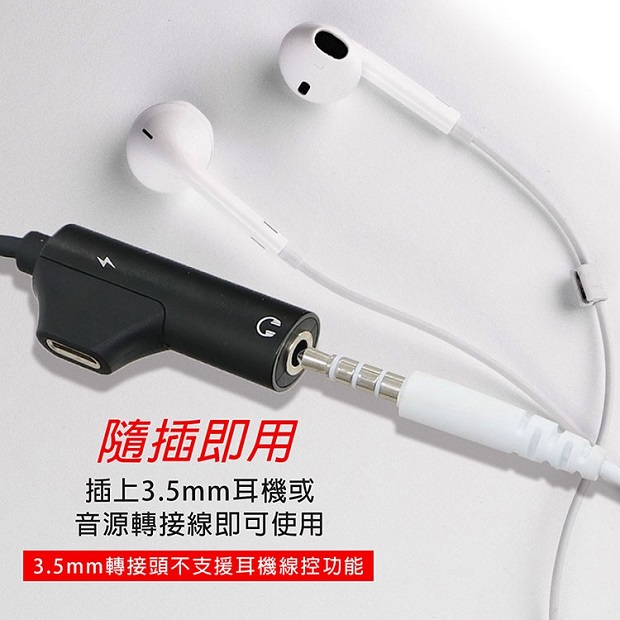 ◆ 本產品僅適用於iPhone 7以上手機(手機本體沒有3.5mm音源孔)播放音樂及充電使用,但不支援手機通話及耳機麥克風按鍵調控功能。