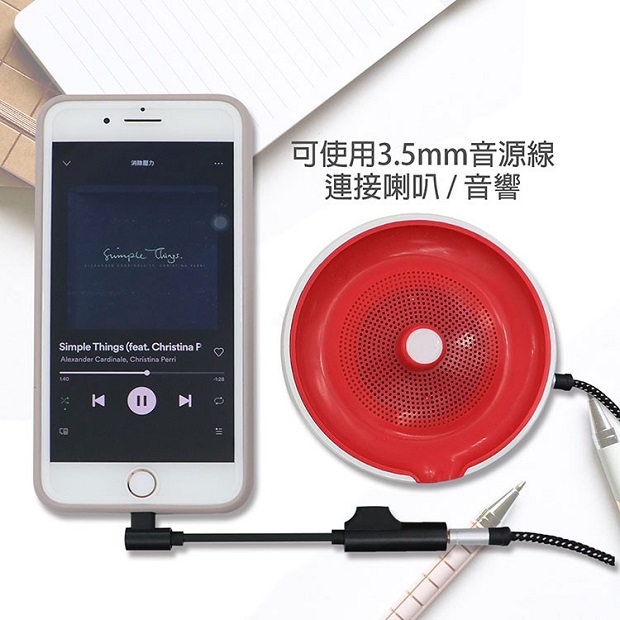 ◆ 可將3.5mm耳機連接本產品到iPhone 7以上手機,即可聽音樂(不支援麥克風按鍵調控),另一端充電孔連接充電線後可同時充電。可同時聽音樂及充電,無雜訊干擾。