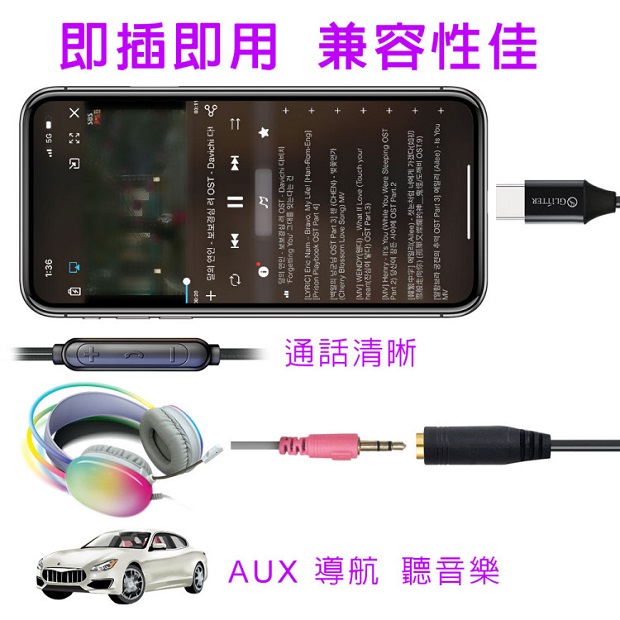 輸出端:3.5mm音源孔 輸入端:TYPE-C