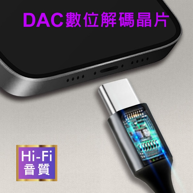 ◆ TYPE-C輸出端子內建DAC數位解碼晶片,適用市售iPhone、Samsung、Google、HUAWEI等超過1500種以上TYPE-C接口手機、平板,提供無損HIFI高音訊品質。