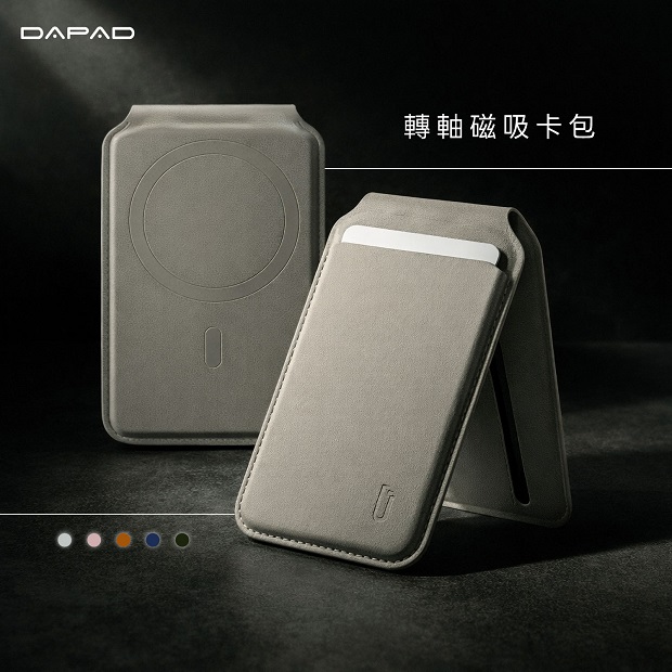 DAPAD 轉軸磁吸卡包 商品代碼:3365 顏 色:黑色、深藍色、灰色、粉色、棕色 商品特色: ◆ 轉軸結構 - 穩固支撐不晃動 ◆ 強力磁吸 - 精選磁鐵穩固吸附 ◆ 卡片收納 - 穩固不掉卡 ◆ 精緻車縫 - 耐用不易變形 ◆ 優質皮料 - 高質感皮革觸感 ◆ 多功能合一 - 卡包 × 支架一次滿足