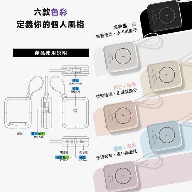 ◆ 自帶「Type-C」與「Lightning」充電線。