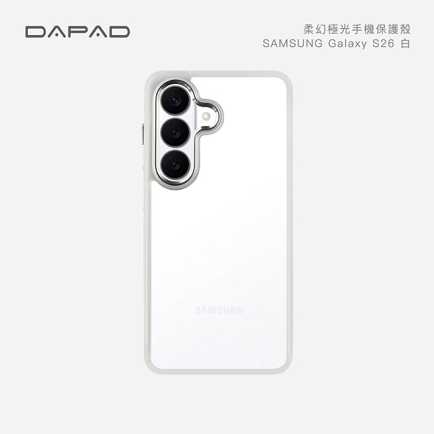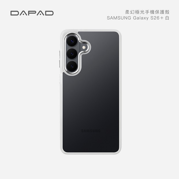 三星 S26系列 Dapad柔幻極光殼 商品代碼:3360 價格代碼 : ZZEHD 型號顏色:黑、粉、白、深藍 Galaxy S26 Galaxy S26+ Galaxy S26 Ultra 商品特色: ■手機美背的好朋友!柔柔膚感的手感邊框、加上抗發黃透明美背、就是讓你貴閃閃的手機又漂亮又張揚! 極致膚感-精緻磨砂工藝,圓潤導角防滑手感 更耐衝擊-TPU吸震矽膠,耐衝擊四角內氣墊 透亮強韌-抗發黃PC硬背,緊緊擁抱原生之美 超越保護-螢幕周圍加高1mm,抵禦平放時摩擦 精緻按鍵-絕佳舒適回饋感