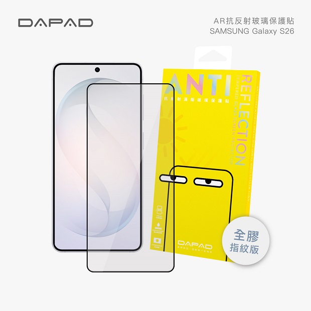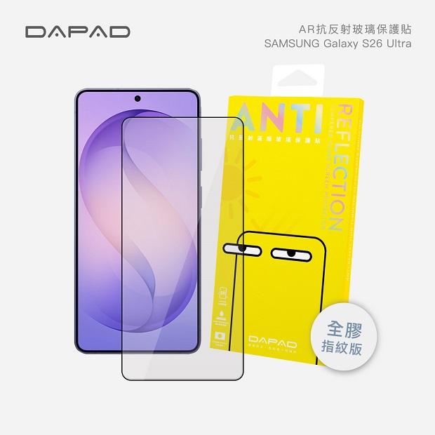 ~Dapad 三星S26系列 AR超抗刮滿版~ 商品代碼:5111-039 價格代碼 : ZZEBM 適用型號: S26 S26+ S26 Ultra 商品介紹 : ◆ AR抗反射塗層 有效減低反射 ◆ 高透光提升透光度畫面超清晰 ◆ 9H鋼化玻璃超高硬度 ◆ 疏水疏油抗污塗層 手感更滑順 ◆ 隱形防塵,有效隔絕毛屑髒污 ◆ 自動吸附快速排氣貼合