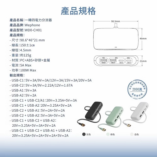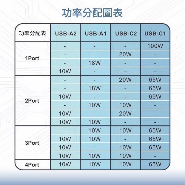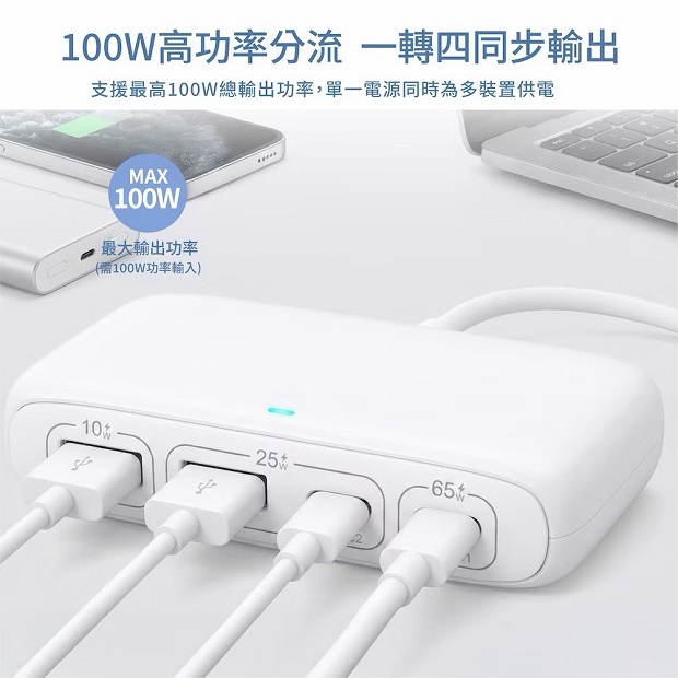 ◆ 支援最高100W總輸出功率,單一電源同時為多裝置供電