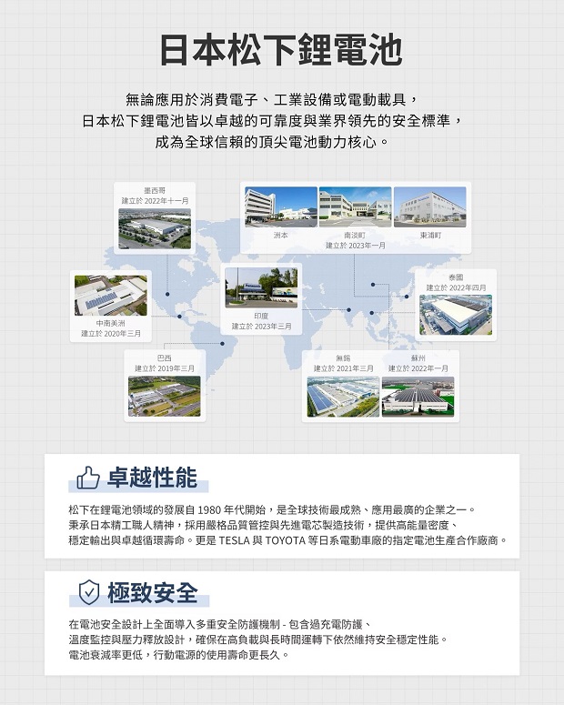 ◆ 日本松下電芯低自放電不怕閒置,安全性與耐用度再升級